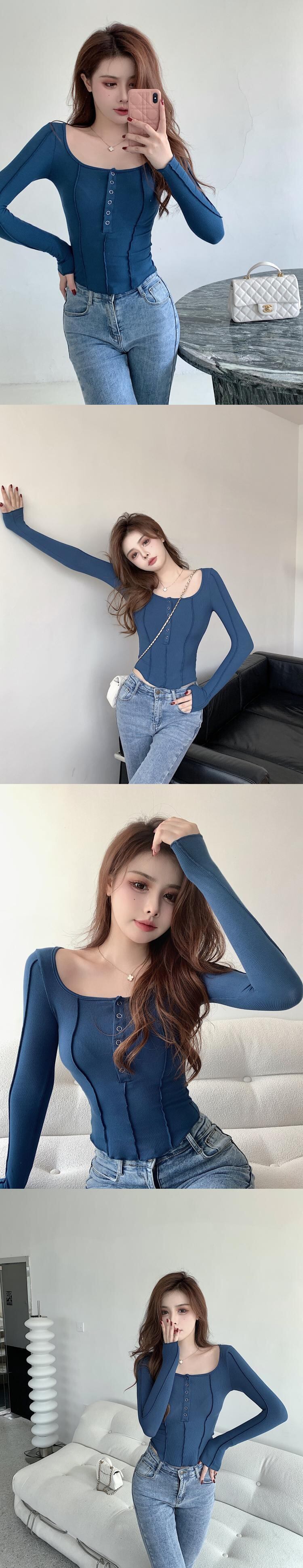 ラインスリムTシャツ シャツ ラウンドネック Oネック ピュア スクウェア 香港の味83710421631