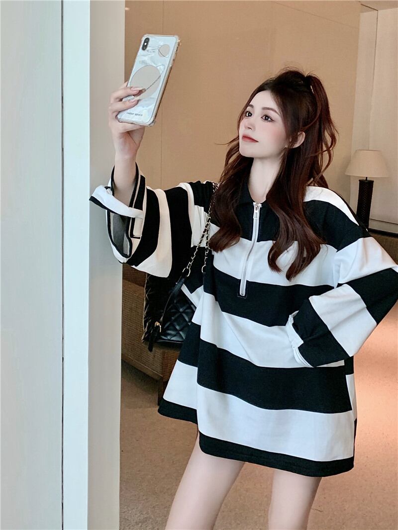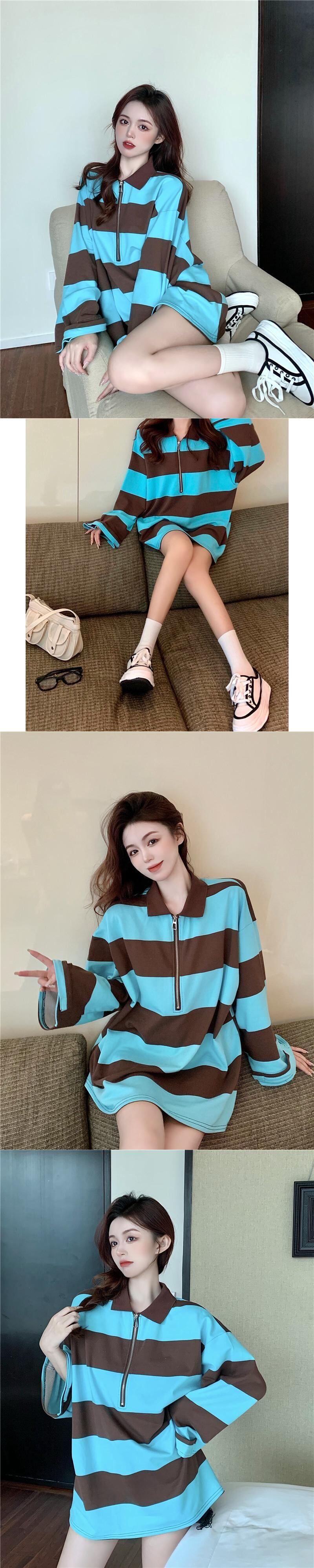 ルーズ薄手ストライプシャツ カラートップス ロング 香港の味71002765991