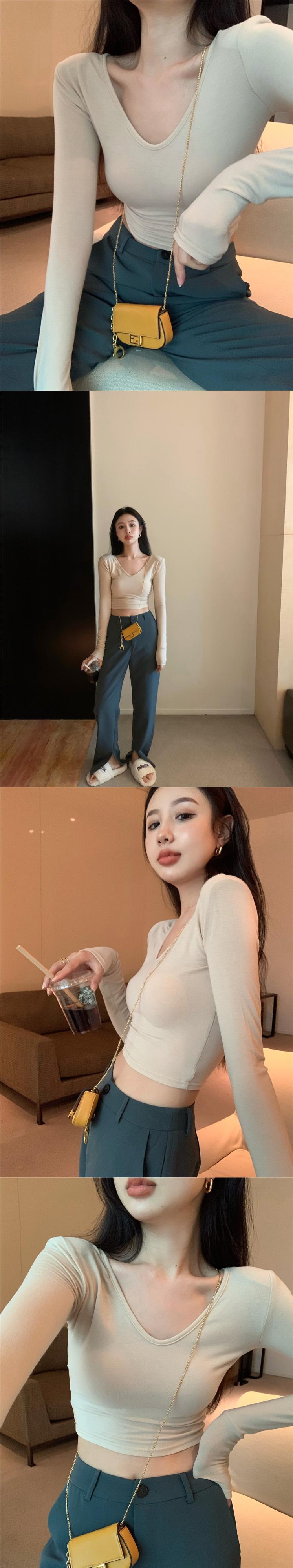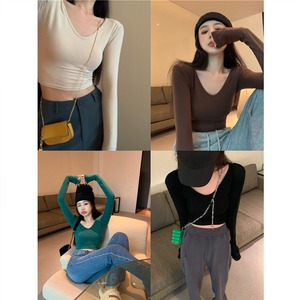 VネックTシャツ シャツ ショートスリムオータムカラートップス ロング 秋物 ピュア 香港の味36954290131