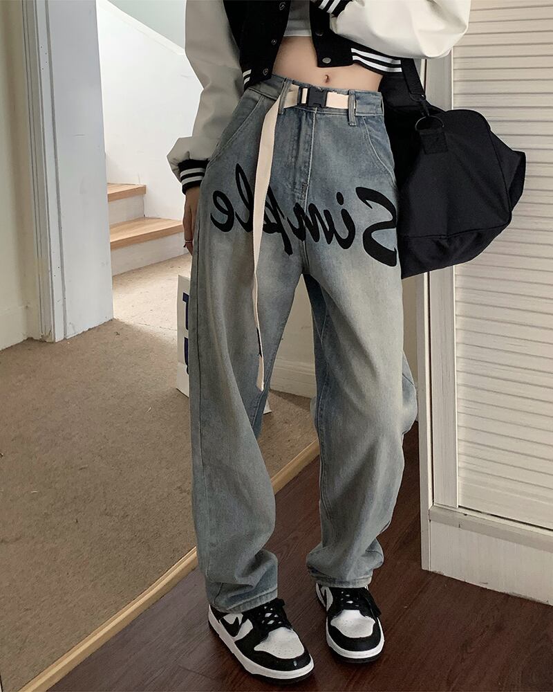 スタンダードパンツ プリントウェストルーズワイドレッグ レトロ ストリート ワイドパンツ 香港の味13323964991