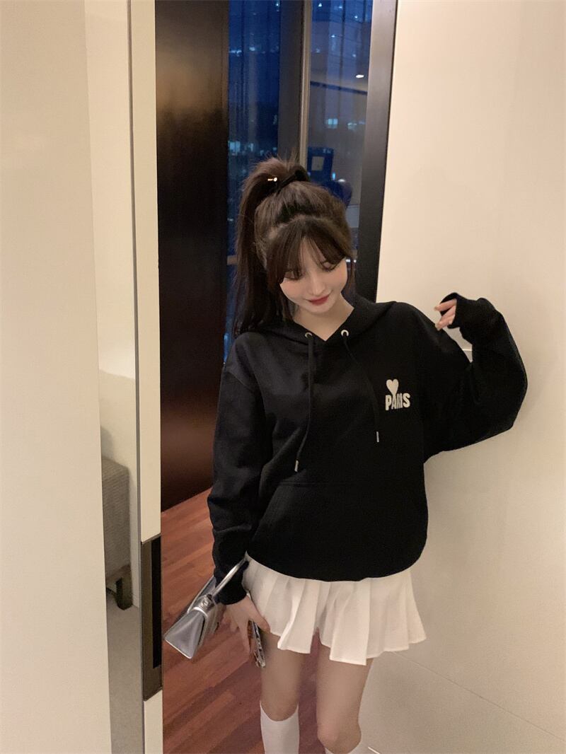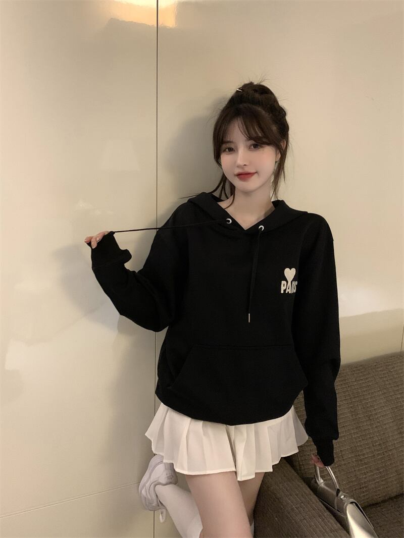 フードプルオーバー セーター レディース刺繍ルーズブラックジャケット スプリングカジュアルトップス ロング 春物 香港の味98606623632