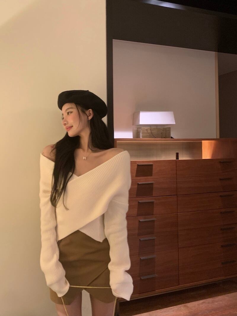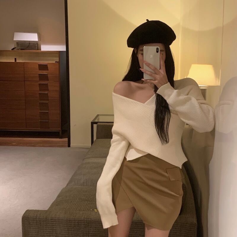 クロスVネックセーター レディーススリムショートオータムウィンタートップス ロング 秋物 冬物 香港の味34811294602