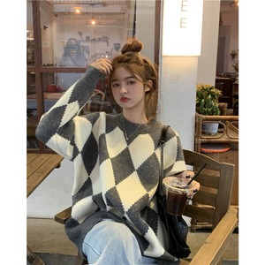 セーター レディースウィンターラウンドネックプルオーバー ルーズシャツ ロング 冬物 Oネック 香港の味80691991147