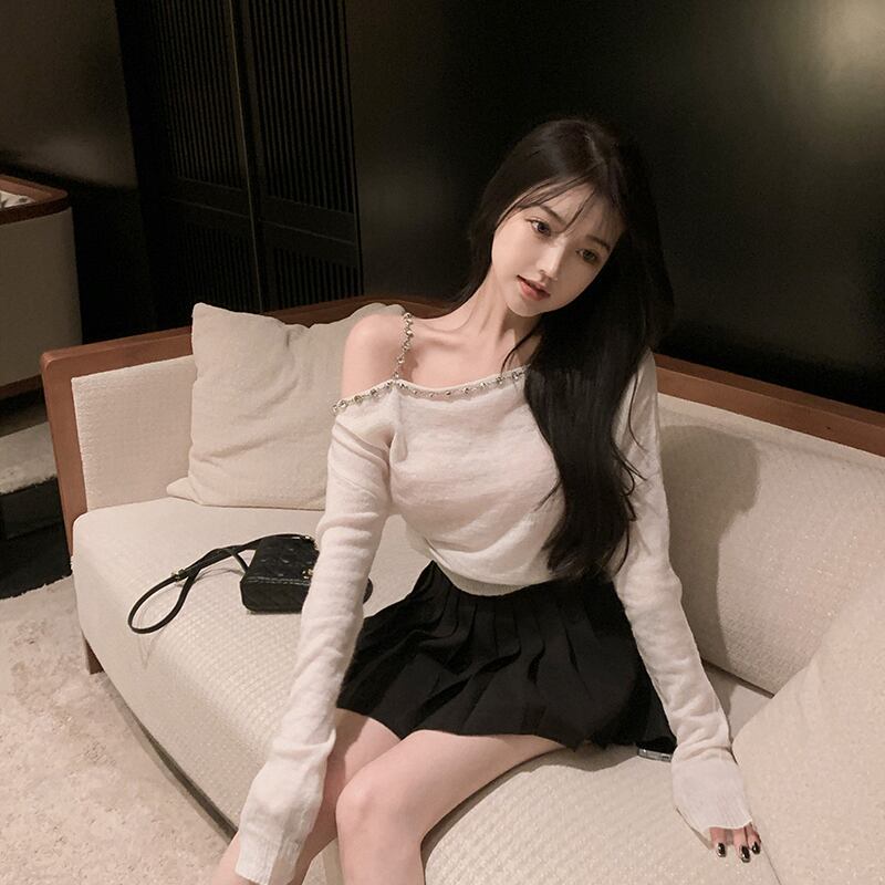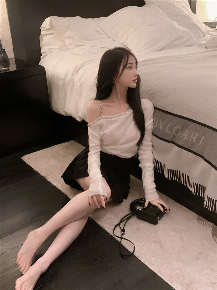 アシンメトリーセーター ルーズオータムウィンタートップス ロング 秋物 冬物 オフショルダー 香港の味39543562656