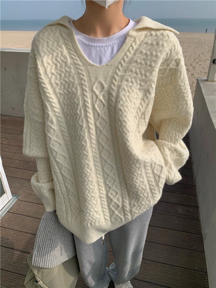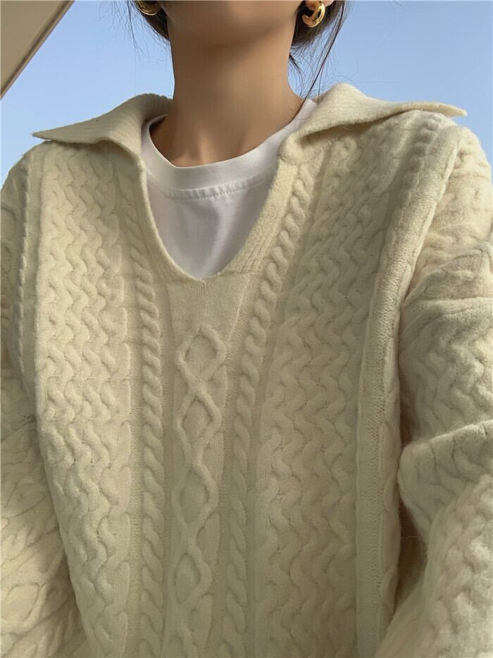 Vネックセーター レディーススタンダードルーズオータムウィンターコート ジャケット レトロ 秋物 冬物 香港の味31277777326