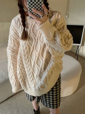 スタンダードセーター レディースウィンタールーズニットラウンドネックプルオーバー トップス レトロ 冬物 Oネック 香港の味30387139188
